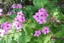 红花酢浆草别名铜锤草、大酸味草、幸运草等,是酢浆草科酢浆草属的多年生直立草本植物。其无地上茎,地下部有球状鳞茎;叶基生,叶柄长5~30cm或更长,被毛;花瓣5,倒心形,淡紫色至紫红色,基部颜色较深。…全部>>