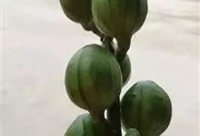 大果榕是桑科榕属的小乔木,株高可达10米;幼枝被柔毛;叶互生,宽卵状心形或近圆形;雄花无梗、匙形、花丝长,雌花生于雌株榕果内,子房白色;榕果簇生于树干基部或老茎短枝上、扁球形或陀螺形,…全部>>