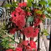 贴梗海棠 Nakai)是蔷薇科、木瓜海棠属植物。落叶灌木,高达2米,枝条直立开展,有刺。叶片卵形至椭圆形,稀长椭圆形,长3-9厘米,宽1.5-5厘米。花先叶开放,3-5朵簇生于二年生老枝上。…全部>>