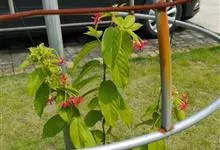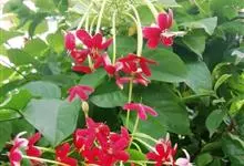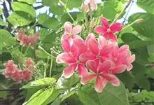 使君子 Jongkind)是使君子科、使君子属攀援灌木,叶对生,椭圆形,两面均被灰白色柔毛。穗状花序,倒挂下垂。花期夏秋。果有五棱,熟时黑色,种子白色。分布于印度、缅甸、菲律宾和中国。喜温润,深根性,…全部>>