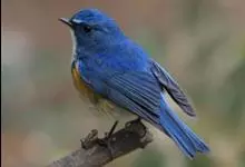红胁蓝尾鸲俗名:蓝点冈子、蓝尾巴根子、蓝尾杰、蓝尾欧鸲。体型略小而喉白的鸲。特征为橘黄色两胁与白色腹部及臀成对比。雄鸟上体蓝色,眉纹白;亚成鸟及雌鸟褐色,尾蓝。…全部>>