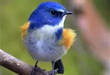 红胁蓝尾鸲俗名:蓝点冈子、蓝尾巴根子、蓝尾杰、蓝尾欧鸲。体型略小而喉白的鸲。特征为橘黄色两胁与白色腹部及臀成对比。雄鸟上体蓝色,眉纹白;亚成鸟及雌鸟褐色,尾蓝。…全部>>