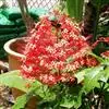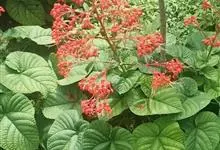 赪桐 Sweet)是唇形科、大青属灌木,高1-4米,叶片圆心形,顶端尖或渐尖,基部心形,边缘有疏短尖齿,表面疏生伏毛,二歧聚伞花序组成顶生,大而开展的圆锥花序,花序的最后侧枝呈总状花序,花萼红色,…全部>>