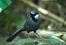 黑喉噪鹛是噪鹛属鸟类。体长24-29厘米,体重75-90克。雄鸟前额、眼先、眼周和眼后纹以及颊、须和喉黑色;黑色前额和蓝灰色头顶之间有道白色细斑;颈侧具椭圆形白斑,…全部>>
