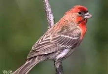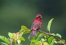 普通朱雀是雀形目雀科朱雀属鸟类,又名红朱雀、马料、青麻料。雄鸟上体红色,下体淡红色;头部、喉部、胸部及腰部亮红色;背部褐色染红色;两翼及尾黑褐色,羽缘染红色。雌鸟上体橄榄褐色,下体近白色,…全部>>