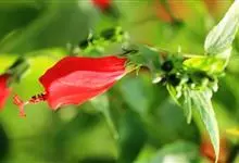 垂花悬铃花是锦葵科、悬铃花属常绿小灌木,外型略似朱槿,但叶片较为狭长浓绿;高30-60厘米,叶片互生,卵形或卵状矩圆形,单叶,有时浅裂,叶形变化较多,叶面具星状毛。花红色,花通常单生于上部叶腋处,下垂,…全部>>