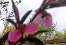 紫叶桃花是李亚科,桃属植物桃的变种,叶为窄椭圆形至披针形,长15厘米,宽4厘米,先端成长而细的尖端,边缘有细齿,暗绿色有光泽,叶基具有蜜腺;树皮暗灰色,随年龄增长出现裂缝;花单生,从淡至深粉红或红色,…全部>>