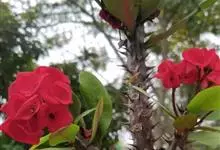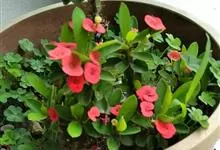 铁海棠为大戟科大戟属蔓生灌木植物;茎多分枝,具纵棱,呈旋转状;叶互生,通常集中于嫩枝上;每个花序基部边缘具微小的红色尖头;苞叶先端圆且具小尖头,无柄,上面鲜红色,下面淡红色;苞片丝状;子房光滑无毛,…全部>>