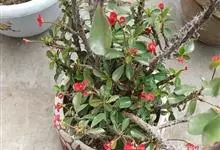 虎刺梅:别称铁海棠,是蔓生灌木植物。茎多分枝,长60-100厘米,直径5-10毫米,具纵棱,密生硬而尖的锥状刺,刺长1-1.5厘米,直径0.5-1.0 毫米,常呈3-5列排列于棱脊上,呈旋转。叶互生…全部>>