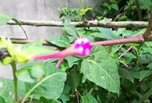 即紫茉莉,英文名:Four-o'clock,Marvel of Peru,为紫茉莉科、紫茉莉属多年生草本植物,一年生栽培。株高50~80cm。根粗壮,茎多分枝而散生。叶对生,卵形或心脏形。花数朵簇生…全部>>