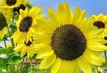 向日葵:是桔梗目、菊科、向日葵属的植物。因花序随太阳转动而得名。是一年生高大草本植物。茎粗壮,高1-3米,不分枝或有时上部分枝,被白色粗硬毛。叶互生,卵状心形或卵形,顶端急尖或渐尖,基生3出脉,…全部>>