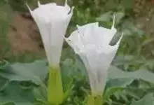 曼陀罗,茄科曼陀罗属一年生大型草本植物,全株光滑。有臭气;叶呈广卯形,边缘具不规则波状浅齿裂;花单生于枝杖间或叶腋,直立,有短梗;花萼是筒状裂片三角形,颜色为白色或淡紫色;果实为蒴果卵状,…全部>>