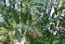 夜香树是茄科、夜香树属直立或近攀援状灌木。枝条细长而下垂。叶有短柄,叶片矩圆状卵形或矩圆状披针形,全缘,顶端渐尖,基部近圆形或宽楔形,两面秃净而发亮,有6-7对侧脉。伞房式聚伞花序,腋生或顶生,…全部>>