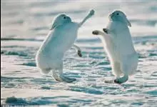 北极兔, 是兔科、兔属的哺乳动物。北极兔体型巨大,头比一般的兔子大且长,耳朵较小,腿长,四肢非常有力灵活,夏季身体背面浅灰色,冬季身体背面白色。北极兔属于群居动物,鼻子、耳朵灵敏,不羞怯胆小,易于驯服,…全部>>