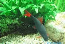彩虹鲨是鲤形目鲤科野鲮属鱼类,别名红鳍野鲮、红鳍鲨。成鱼体长12厘米,体呈长梭形,侧稍扁。尾鳍呈叉状;背鳍特别宽大,嘴上有两根胡须。鱼体呈浅褐色,各鳍均呈橘红色;雄鱼的臀鳍镶有黑边,…全部>>