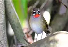 斑胸短翅莺:小型鸟类,体长11-13厘米。上体暗赭褐色,眉纹灰白;下体白色,下喉至上胸具灰褐点斑,很显著;腹部中央灰白色。虹膜褐色;嘴黑色;脚淡灰角色,爪角褐色。…全部>>
