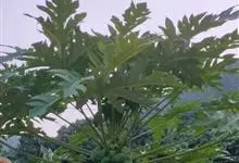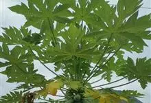 番木瓜,番木瓜科番木瓜属的常绿软木质小乔木,高达10米,具有乳汁;茎不分枝或有时于损伤处分枝;叶大且聚生于茎顶,近似盾形,叶柄中空;花单性或两性,有些品种雄株偶尔生两性花或雌花,…全部>>