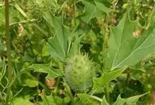 曼陀罗,茄科曼陀罗属一年生大型草本植物,全株光滑。有臭气;叶呈广卯形,边缘具不规则波状浅齿裂;花单生于枝杖间或叶腋,直立,有短梗;花萼是筒状裂片三角形,颜色为白色或淡紫色;果实为蒴果卵状,…全部>>
