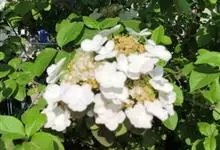 蝴蝶戏珠花 Miq.)是荚蒾科荚蒾属植物。落叶灌木,高达3米;当年小枝浅黄褐色。叶较狭,宽卵形或矩圆状卵形,有时椭圆状倒卵形。花序直径4-10厘米,外围有4-6朵白色、木型的不孕花。果实先红色后变黑色,…全部>>