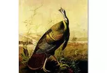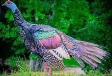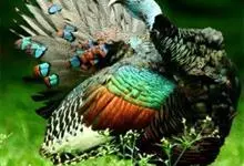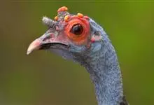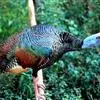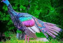 眼斑吐绶鸡:是火鸡科的两种鸟类之一。体型比普通火鸡略小些,体长1米左右,体重2.4-5.4千克,雄性比雌性略大,长得很特别,蓝色的秃脑袋上冒出几个橙黄色的疙瘩。但是它羽色艳丽,身体呈铜色及绿色。…全部>>