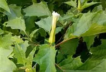 曼陀罗,茄科曼陀罗属一年生大型草本植物,全株光滑。有臭气;叶呈广卯形,边缘具不规则波状浅齿裂;花单生于枝杖间或叶腋,直立,有短梗;花萼是筒状裂片三角形,颜色为白色或淡紫色;果实为蒴果卵状,…全部>>