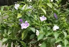鸳鸯茉莉,茄科鸳鸯茉莉属常绿灌木植物,高1米。茎皮深褐色;分枝力强;单叶互生纸质;花簇生,聚伞花序,花冠五裂花瓣锯齿,含苞时蘑菇状深紫色,花香浓郁;花期4-10月。鸳鸯茉莉花朵芳香,…全部>>