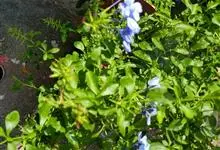 蓝花丹是白花丹科、白花丹属的常绿亚灌木。高约1米;叶薄,呈菱状卵形至狭长卵形;穗状总状花序,总花梗短,花冠淡蓝色至蓝白色,呈倒卵形,苞片呈线状狭长卵形,小苞呈狭卵形或长卵形,…全部>>