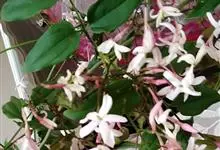 素馨花,木犀科素馨属多年生的攀援灌木植物。攀援灌木,小枝圆柱形,具棱或沟;叶对生,叶轴常具窄翼,小叶片卵形或长卵形;聚伞花序顶生或腋生,花序梗长,苞片线形,花萼无毛,裂片锥状线形,花冠白色,…全部>>