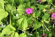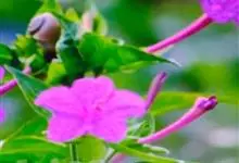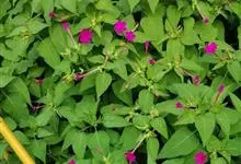 即紫茉莉,英文名:Four-o'clock,Marvel of Peru,为紫茉莉科、紫茉莉属多年生草本植物,一年生栽培。株高50~80cm。根粗壮,茎多分枝而散生。叶对生,卵形或心脏形。花数朵簇生…全部>>