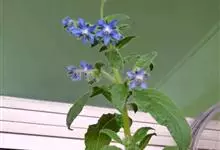 玻璃苣是紫草科、玻璃苣属一年生草本植物,株高可达60厘米,叶片椭圆形,叶脉处正面下凹,有叶翼,聚伞花序,花萼淡紫色,花瓣深蓝色或淡紫色,具芳香,5-10月开花,7-11月结果。生地中海沿岸及小亚细亚。…全部>>