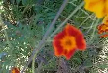 万寿菊是菊科万寿菊属一年生草本植物,别名孔雀菊、缎子花、臭菊花、西番菊、红黄草、小万寿菊、臭芙蓉、孔雀草。万寿菊茎近基部分枝。叶羽状分裂,长5-10厘米,宽4-8厘米,裂片长椭圆形或披针形,具锐齿,…全部>>