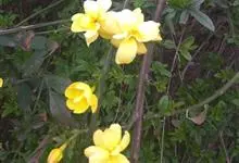 迎春花,木犀科素馨属的多年生木本植物,小枝细长直立或者呈拱形下垂;叶片呈卵形或椭圆形;花单生于叶腋处,苞片呈披针形或椭圆形,花冠为金黄色,花瓣通常为倒卵形或椭圆形;花期在6月。…全部>>