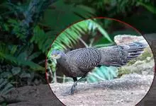 灰孔雀雉:雄鸟体长50-67厘米,体重456-710克;雌鸟体长33-52厘米,体重460-500克。雄鸟全身羽毛黑褐色,…全部>>