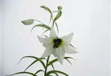 野百合是百合科百合属的多年生草本植物。鳞茎呈球形,鳞片呈披针形白色;茎高0.7-2米,有紫色条纹;叶散生,呈披针形、窄披针形或条形,两面无毛;花单生或几朵排成近伞形,呈喇叭形,有香气,乳白色带有紫色,…全部>>