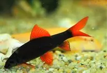 彩虹鲨是鲤形目鲤科野鲮属鱼类,别名红鳍野鲮、红鳍鲨。成鱼体长12厘米,体呈长梭形,侧稍扁。尾鳍呈叉状;背鳍特别宽大,嘴上有两根胡须。鱼体呈浅褐色,各鳍均呈橘红色;雄鱼的臀鳍镶有黑边,…全部>>