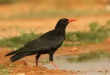 红嘴山鸦,是脊索动物门鸟纲雀形目鸦科鸟类。红嘴山鸦的成鸟通体羽毛纯黑色具有蓝色金属光泽,翼和尾泛有蓝绿色金属光泽;虹膜暗褐色,喙较为尖细,并且呈镰状下弯,喙和脚朱红色。…全部>>