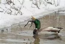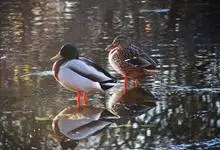 鸭是雁形目、鸭科、野鸭属多种野生鸭类的通称。俗称水鸭、芦鸭、蚬鹅。狭义的野鸭仅指绿头鸭。雌野鸭体型较小,体长50-56厘米,体重约1千克。成年公野鸭羽色艳丽。头颈羽有翠绿色金属光泽,…全部>>