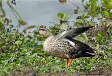 斑嘴鸭是雁形目鸭科鸭属鸟类。李文华,旭日干,中国自然资源通典 辽宁卷,内蒙古教育出版社,2015,第361页雄鸟体羽大部棕褐色;嘴蓝黑色,先端黄色,嘴基至耳区贯眼线黑褐色;虹膜黑褐色,…全部>>