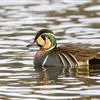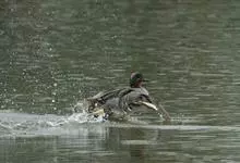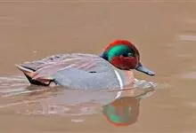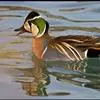 绿翅鸭是小型鸭类,体长37厘米,体重约0.5千克。嘴脚均为黑色。雄鸟头至颈部深栗色,头顶两侧从眼开始有一条宽阔的绿色带斑一直延伸至颈侧,尾下覆羽黑色,两侧各有一黄色三角形斑,在水中游泳时,极为醒目。…全部>>