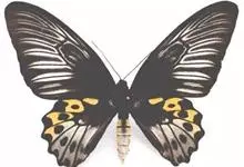 金裳凤蝶是凤蝶科、裳凤蝶属的动物。金裳凤蝶身体呈黑色,头、颈和胸侧有红毛,腹部有黑黄两色相间条纹,雄蝶前翅黑色,具黑天鹅绒光泽,各脉两侧灰白色,后翅金黄色,各室外缘有等腰三角形黑斑1枚,斑内侧有晕,…全部>>