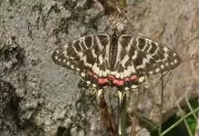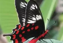 曙凤蝶是凤蝶科、曙凤蝶属蝴蝶。体背黑色,头、颈、胸侧及腹侧具红色鳞毛。雌、雄异型。雄蝶翅黑绒色,后翅的臀缘褶很大,反卷且具灰白色体毛的性标。雌蝶前翅大部及后翅色淡,…全部>>