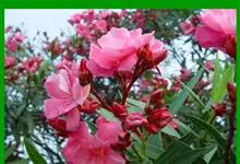 夹竹桃,又名红花夹竹桃、欧洲夹竹桃,是夹竹桃科夹竹桃属的一种常绿直立大灌木,枝条灰绿色,含水液。叶披针形,3叶轮生。聚伞花序顶生,花冠粉红至深红色,花冠漏斗状,有特殊香味。蓇葖果,圆柱形。种子长圆形,…全部>>