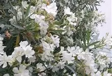 白花夹竹桃是夹竹桃科、夹竹桃属植物夹竹桃的栽培品种。常绿直立大灌木,枝条灰绿色;嫩枝条具稜,被微毛,老时毛脱落。叶3-4枚轮生,下枝为对生,叶面深绿,叶背浅绿色;侧脉纤细平行与中脉成直角;叶柄扁平,…全部>>