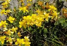 黄海棠是金丝桃科金丝桃属的多年生草本植物。叶披针形、长圆状披针形、长圆状卵形或椭圆形,基部楔形或心形,抱茎,无柄,下面疏被淡色腺点;花序近伞房状或窄圆锥状,蒴果卵球形或卵球状三角形,呈深褐色。…全部>>