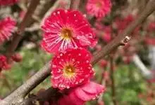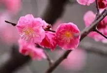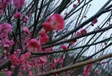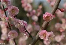 宫粉梅 Rehd.)是蔷薇科、李属植物,梅花品系中真梅系直枝梅类宫粉型,其花复瓣至重瓣,呈或深或浅的红色。落叶乔木,高达10米。树干褐紫色,有纵驳纹,小枝细而无毛,多为绿色。叶广卵形至卵形,…全部>>