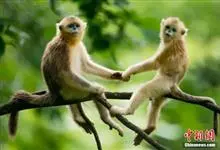 川金丝猴,别名狮子鼻猴、仰鼻猴、金绒猴、兰面猴、洛克安娜猴、长尾子、线子、线狨、马狨、果然兽、果然狨、金线狨,属灵长目、猴科、仰鼻猴属。毛质柔软,为中国特有的珍贵动物,群栖高山密林中,为国家一级保护…全部>>