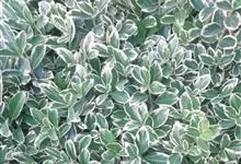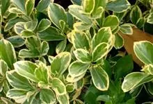 金边黄杨是卫矛科卫矛属的常绿灌木或小乔木,金边黄杨小枝略为四棱形,枝叶密生;单叶对生,倒卵形或椭圆形,边缘具钝齿,表面深绿色,有光泽;聚伞花序腋生,具长梗,花绿白色;蒴果球形,淡红色;花期5~6月。…全部>>