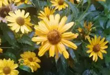 赛菊芋是菊科赛菊芋属多年生草本植物。多分枝;叶对生,长卵圆形,先端圆钝,基部楔形,具长柄,边缘具锯齿,叶面粗糙;头状花序集成伞房状花序;花为黄色;花期夏季;因其外形酷似菊芋,并归类为菊科而得名。…全部>>