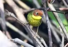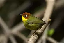 栗头地莺:小型鸣禽。体长约10厘米。体型纤细,是中国体型最小的鸟类之一;喙细尖,上喙先端多有缺刻;翅短圆;尾短至中等;腿短而细。羽色以灰、褐及橄榄绿为主,雌雄羽色相似。栖息于灌木或稀疏林内,…全部>>