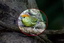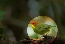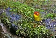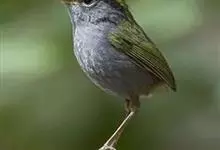 金冠地莺:形态与灰腹地莺相似,上体橄榄绿,前额至头顶渲染亮金黄色;下体几乎纯暗石板灰色,下嘴基部橙红色或橙黄色。虹膜褐色;上嘴角褐色,下嘴基部橙红色或深橙黄色直至嘴尖;跗跖和趾褐色,爪褐色。…全部>>